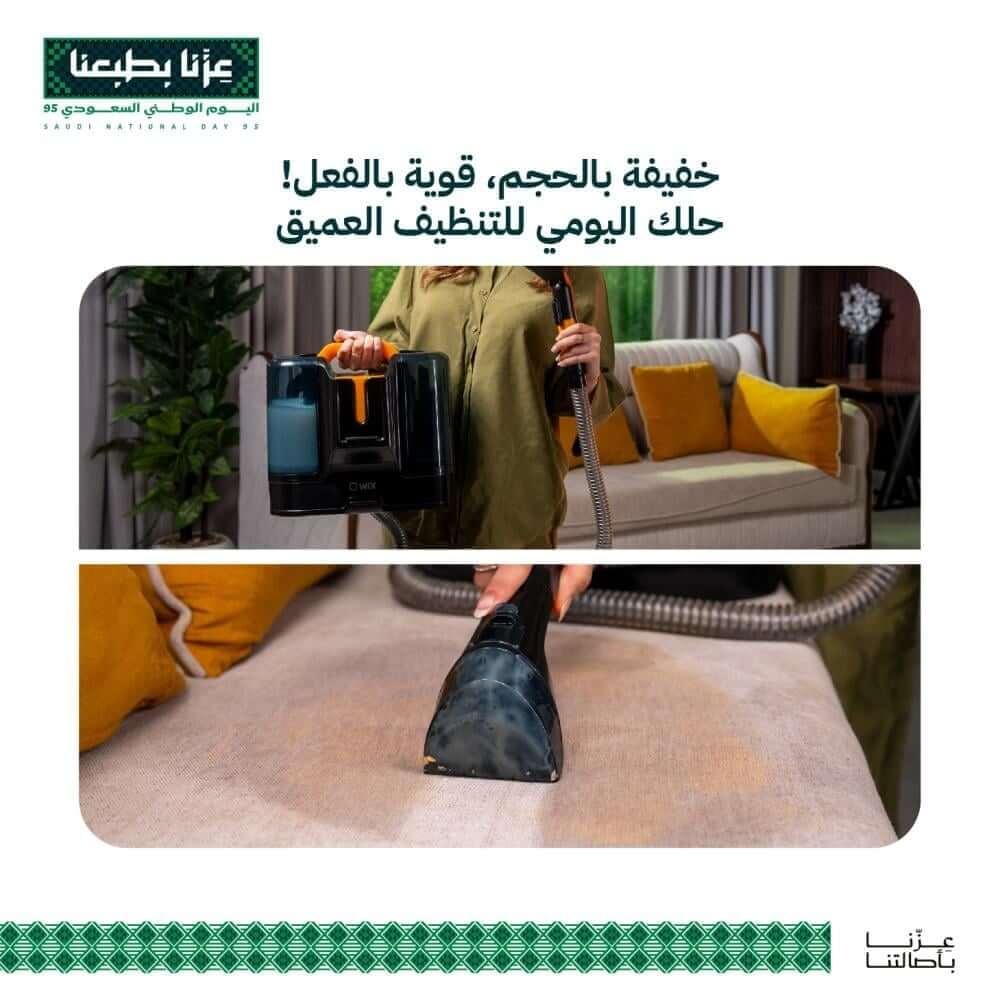 احصل الآن على مكنسة غسيل السجاد من ويكس، واستمتع بتنظيف كامل وفعّال لمنزلك بسهولة، مع أدوات متعددة الاستخدامات وأداء قوي يضمن إزالة جميع البقع دون عناء.